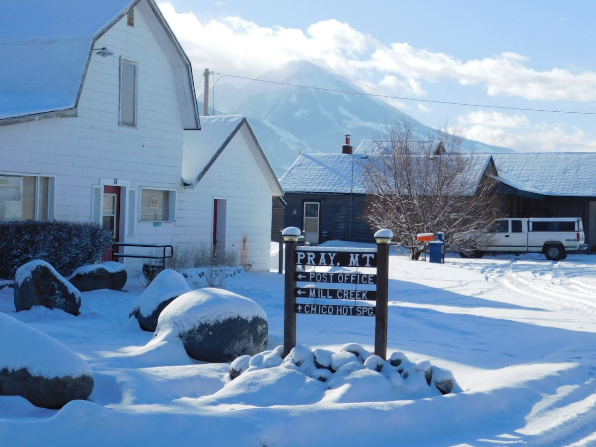 / nightOne bedroom apartment attached to what once was a historic log bar now an art gallery and frame shop. This business is quiet and is closed at 4:00 every day. The apartment is spacious, about 500 sq ft with sliding door opening to a large deck with table and chairs, propane BBQ, and views of mountains. Lounge chairs are available in the warmer months. It is an ideal location, so close to Chico Hot Springs, 4-5 restaurants and bars, fishing, hiking and the quaint western town of Livingston! It is in a picturesque location and is clean and charming. The bed is comfy and has a sliding door opening to an 8' x 24' deck and a wonderful view of the mountains and also is private from other homes and the road. There is a large 'L' shaped country kitchen that has a love seat and end table as well as the dining table with seating for 4 and a corner cabinet offering storage of kitchen serving dishes, etc. There is a full-sized washer and dryer with laundry soap and dryer sheets provided. There is no separate living room. Tariff varies according to time of year. If you brought your four-legged, we have a small pet fee of $10 per day up to a maximum of $45, unless the stay is longer than 14 days. Additional pets, slightly more. Please get a quote for longer stays and multiple pets. A $30 fee is automatically added by Airbnb. Additional pet fee can be paid via Airbnb site. We have a portable AC unit vented to outside. For bargain hunters and folks needing just one more day... Between October and March, you may add a 3rd day to your stay for $50! Washer, dryer, deck, table and chairs, and all the amenities of your own kitchen, gas BBQ with propane provided. All paper products, kitchen staples and an abundance of spices are included! Also WIFI and Dishnet satellite tv with lots of channels. Also a campfire pit with firewood, in reasonable amounts. Slight. We are here to answer questions and make sure everything is in order! We live a few miles away, my husband, Gary, works in the gallery during the day. There is no noise from the business. The apartment is oriented to the backyard and the mountains and is shielded from any minimal road noise by design. Gary's hours are shorter these days as he nears retirement. We do have a co-host, Matt, that can assist if we are away. I love the town of Pray! The town is really a wide spot in the road with a post office, art gallery, hair salon, surrounded by ranches and small acreages. The historic Chico Hot Springs is two miles away with its hot springs pool, Saloon, fine Dining Room and Poolside Grille. Other restaurants and bars or saloons are in the area, within ten minutes drive. The mountains are ten thousand feet high and are always beautiful. Horses frolic in pastures and there could be a cattle drive going on right on the road. Yellowstone is 35 minutes away. Emigrant is 3 miles away for a wonderful selection of groceries, even organic. Car or bike is necessary. Horses are welcome too! I have heard there are Uber drivers in the area now! Daily bus to and from Bozeman leaves from Livingston at the Shopco store. Wifi is available and a variety of movies for the 40" flat screen television and dvd player. BBQ and a kitchen stocked with the basics awaits you! Ketchup, mustard, steak sauce, hot sauce, vinegars, extra virgin olive oil and Pam spray, usually a salad dressing or two and basic paper products are provided for you!