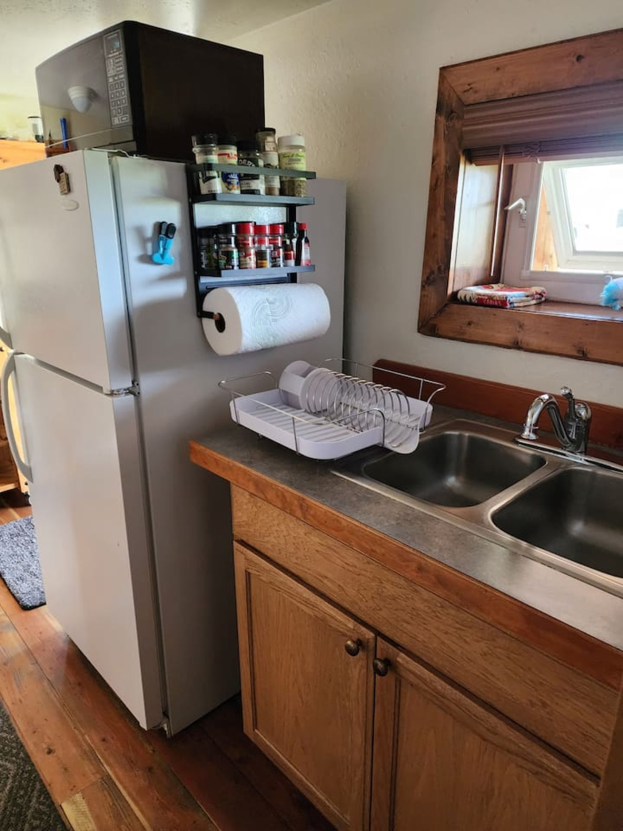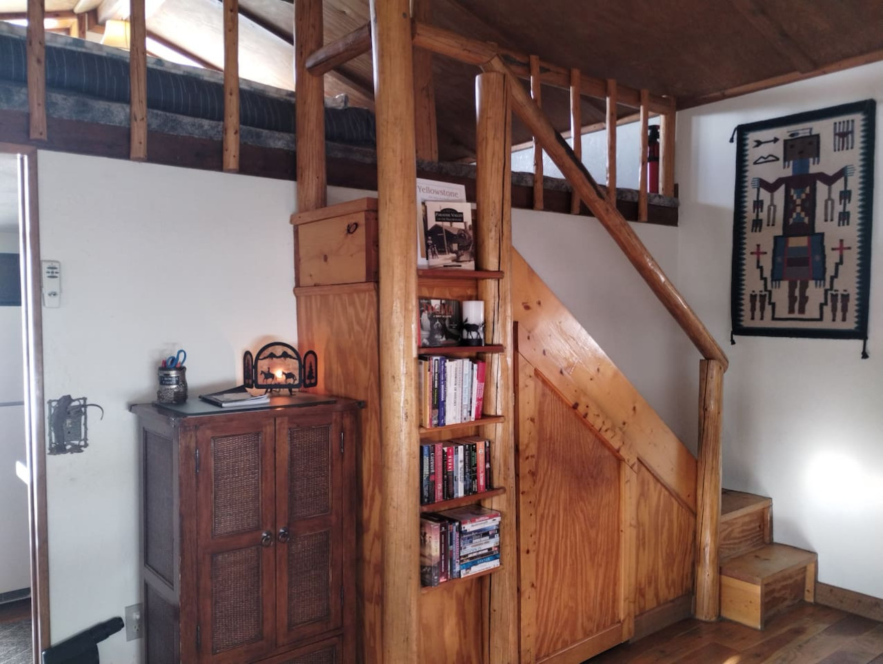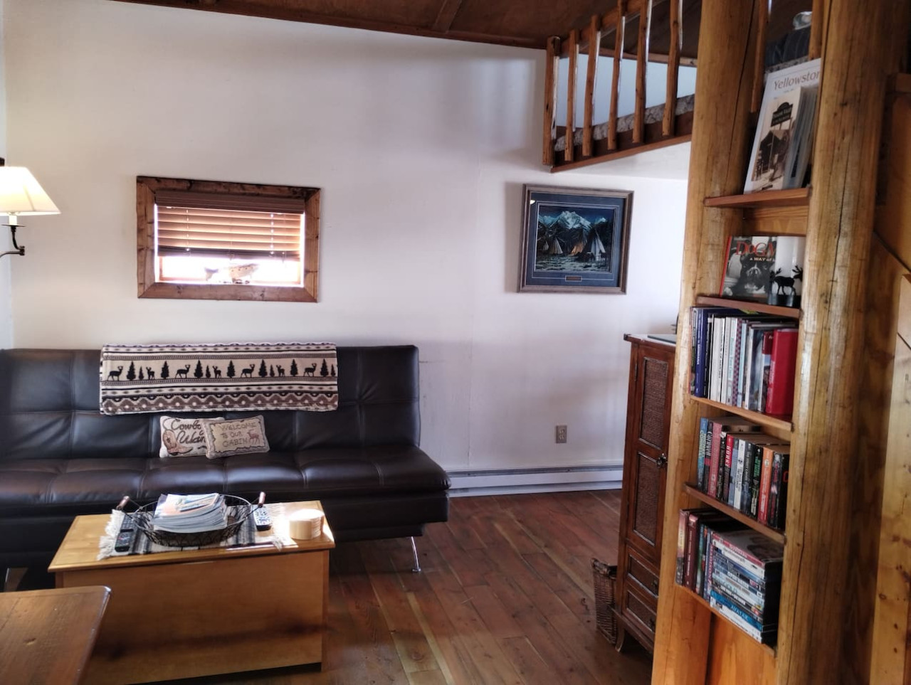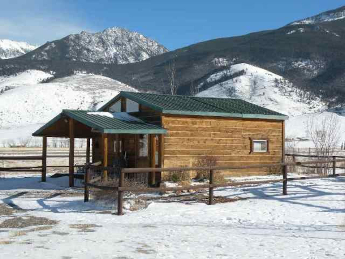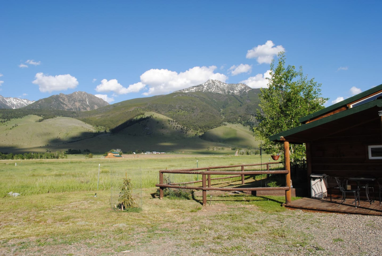 / nightDexter Peak Cabin is located near the base of the mountains on a 25 acre parcel shared with our home but still private. Close to Livingston, Chico Hot Springs, Yellowstone River, waterfalls, hiking and fishing, and 35 minutes to Yellowstone Park. Cabin is located about 200' from owner's home but the outdoor areas are oriented away from the home and toward the mountains. Little to no traffic as we are a couple with no kids. Dexter Peak Road is a great road for walking! Cozy, comfy cabin with circle-sawn wood floors, art created by the owner, Amish-made table and chairs with hickory and walnut, gas bbq, washer/dryer, 32" flat screen TV with abundance of movies, books, games, guide books, cotton sheets, fluffy towels, and tasteful extras not normally seen! Owner manages and strives to please the most discriminating guests! The loft contains a comfy king bed with room for small children to sleep on sleeping pads too. One can watch TV from bed if desired. (Please don't eat crumbly things in bed!) Note the ceiling height is about 4-5', not tall enough to stand up. Please look at pictures. If this is a concern, we have two more cabins with bedrooms on the first floor, as well as a fully-self-contained RV. Downstairs is a nice quality full-size futon couch for sleeping (it is firm), best for one adult, or two cuddling adults, or two small children. Linens, pillows, blankets are available in the chest and laundry cupboard. The bathroom has a pedestal sink, corner shower with fiberglass walls and a full-size commercial washer/dryer. Large refrigerator, double sink, four burner stove (24") makes cooking meals convenient. Cupboards are stocked with dishes, pots, pans, blenders, coffee pot, crock pot, wine glasses, all paper products and a nice selections of vinegars, oils, staples, seasonings. There generally is a fair selection of salad dressings, ketchup, mustard in the refrigerator. Since covid, some staples may not be provided. Delight in the solace offered by the quiet, changing views of the mountains, moody skies, approaching storms, deer, elk, red foxes and birds of all kinds. Parking in front of the cabin. Car is necessary. Walking in the neighborhood is welcome, please just keep your pets on the road and not roaming in neighbors' pastures. Wifi-good enough for remote work and video calls, Adirondack chairs on the lawn, wrought iron table and chairs, fire pit with ample amount firewood provided (a reasonable $ for more than normal) horseshoes, propane BBQ. Past guests have left a gift of bear spray (2) for you to use if you like. Minimal. Greetings and assistance with visiting the area. There are books in the cabin to assist with viewing Yellowstone and the area, and one is fun for kids to use while going through the park. There also is information in the cabin about restaurants, hikes, and tips about things to do. Thirty-five to forty-five minutes to Yellowstone Park, ten minutes to Chico Hot Springs, and 15 minutes to Yellowstone River and creeks, fishing, hikes to waterfalls, and wildlife in the yard. There are about 5 restaurants/bars/bakery within 15 minutes of the cabin, and all are good. Cabin shares 25 acres with our home a couple hundred feet away, somewhat sheltered by trees and shrubs. We are quiet folks so you won't be disturbed. The area is open ranch land with scattered junipers, cottonwoods, willows. One can easily see sunsets, sunrises over the mountains, approaching storms, rainbows and wildlife, rather than being snuggled in the forest. There are no bears or scary animals around the cabin! Mainly mule deer, elk in the winter, an occasional badger, rabbits, red foxes, eagles, hawks, finches, blue birds, robins, meadowlarks, magpies, ravens, osprey, owls and more! Car, motorcycle, and bike. Walking in the area of the cabin and in the wilderness is recommended. Dogs are welcome with an extra $10 per day fee to a maximum of $45 for one week. Longer stays negotiable. We are located at 4800' elevation so temperatures drop at night. There is a portable AC unit that does the job for hot summer days. There is a ceiling fan too. There is often a breeze due to the location on a bench above the river with mountains on both sides. If one books during peak season more than 9 months in advance, host has right to correct pricing from automatic settings. We strive to have our calendars accurate.