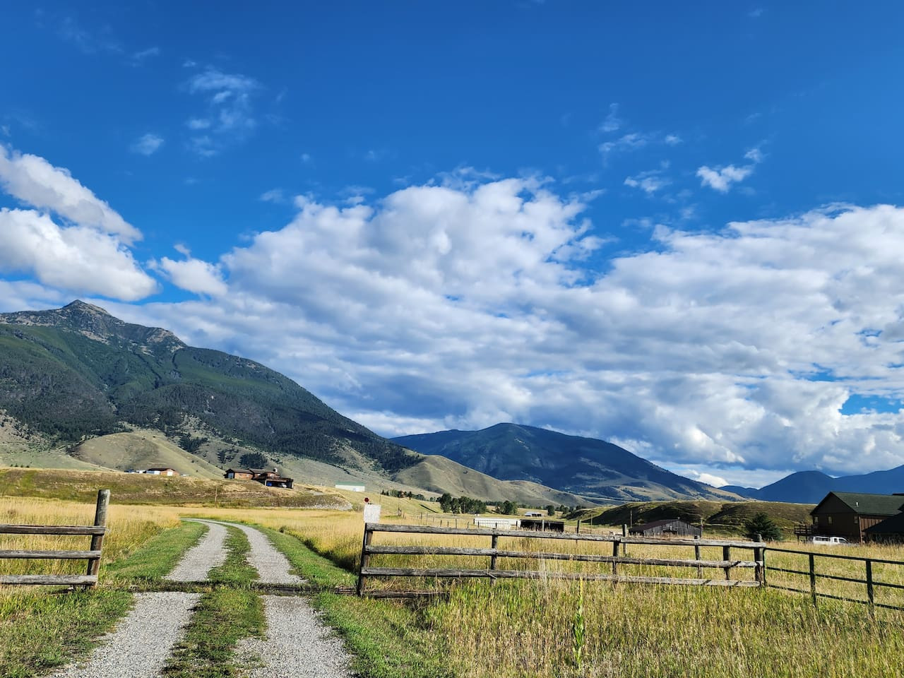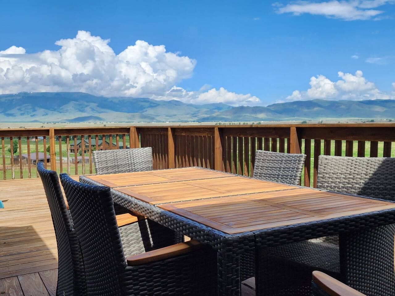 / nightForget your worries in this spacious and serene space. The views are 360 degree, with 10 to 11 thousand foot mountains very near. See the steam off the Yellowstone River from the 1,000 foot deck. Dine at the new outdoor table with seating for eight. With fall in the air, the river rock fireplace with Heat and Glo insert makes snuggling on the couch while watching the snow fall an idyllic evening. Wake up from a night's sleep unlike none other. Why? QUIET! The home rests on a bench overlooking a lower pasture and a long driveway access to the property. One can glimpse the Yellowstone River from the 1000 foot deck while sipping a favorite beverage from the new Adirondack chairs and table with gas firepit. Our mom's favorite feature of this house is that is light and bright with views of the mountains reminding her of our grandparent's home at the foot of the Cascades in Washington. The kitchen is large and well-equipped with most small and large appliances, new. The master bedroom is also very large and spacious with a bathroom adjacent. There is a bathtub and shower combination with shower massage attachment. The home has been updated with new floor coverings, appliances, big and small. Parcels of land in the immediate area are 20 acres minimum. A caretaker will be staying in an RV on the eastside of the barn through October. In November, he will occupy the lower level. Rental rates will be less during the winter months, but the beautiful views and spaciousness of the 1st floor will delight you and your privacy will not be compromised. The entire first floor. The style of the home is a ranch with a daylight basement. Everything one needs is on the first floor. The garage has our mom's belongings and a UTV. We may need this if substantial snows fall. My brother, Steve, is the caretaker and will be onsite unless traveling. My husband and I and Mom live in the home adjacent on the far south side of that parcel. We are around to assist but are intent on allowing our guests their privacy. The neighborhood is the perfect location in that it is 35 miles from Gardiner, the north entrance to the park, 22 miles from Livingston, and a dozen fishing accesses within 20 minutes. And I didn't even mention the 360 degree views of mountains from the home! The Absaroka Beartooth Mountains are so close you can almost touch them. The home is located on a bench on the east side of the valley above the Yellowstone River. It has its own long driveway to access the home. Most of our snows are around 4-6" and blows away. In the event of biannual 12" or more snows, we do have a UTV with a plow. East River Road is plowed by the county pretty promptly for school buses and folks to get to work. Five or six restaurants are within 15 minutes of the home as well as many musical venues. Some restaurants close during the winter season. It is necessary to have a vehicle in the area to explore Yellowstone, the hot springs, shop, dine. Montana is unlike urban areas, one must drive 5 to 30 miles to shop, dine or ? Everything is not just 2 miles away, although we do have the Emigrant General Store in Emigrant, 10 minutes away, which sells just about everything one could want. There are shuttles available to the airport and a bus service from Livingston to many stops in Bozeman.